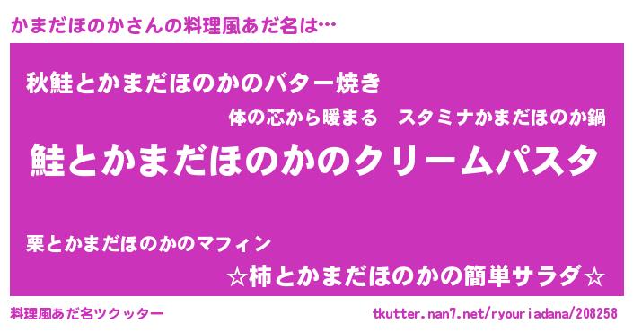 | ヘコむあだ名 | 『かまだほのか(笑)』『なまこ酢』 |