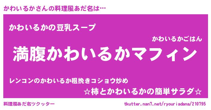 | 胡散臭い通販商品みたいなあだ名 | 『絶対に幸福をもたらす水素水…その名も「かわいるか」』 |