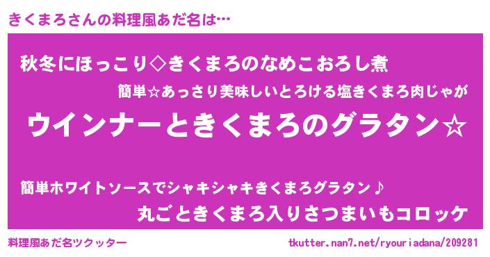 | ヘコむあだ名 | 『なまこ酢』『きくまろ(爆)』 |