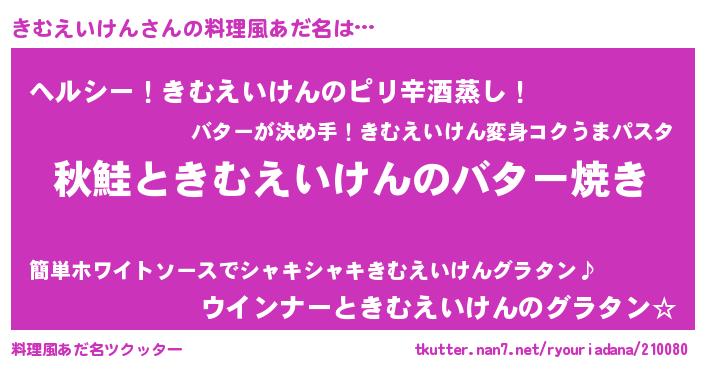 | 胡散臭い通販商品みたいなあだ名 | 『来世でも幸せになれる水素水…その名も「きむえいけん」』 |