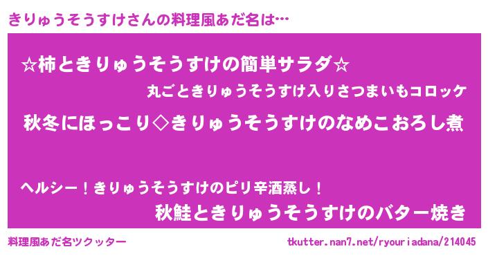 | 意味不明あだ名 | 『永久保存きりゅうそうすけ』 |