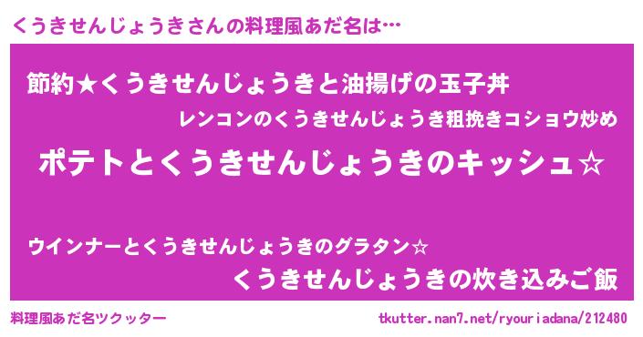 | 意味不明あだ名 | 『とにかく怪しいくうきせんじょうき』 |