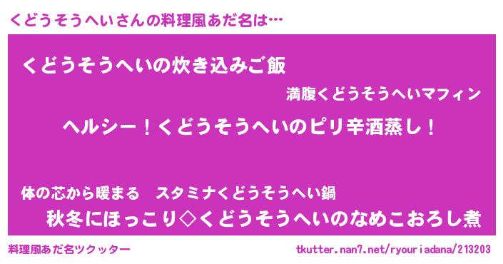 | 意味不明あだ名 | 『自称くどうそうへい』 |