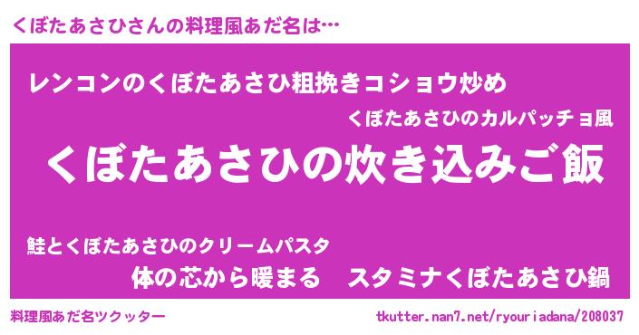 | 意味不明あだ名 | 『自称くぼたあさひ』 |