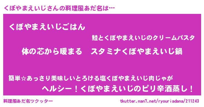 | 欧米人風あだ名 | 『くぼやまえいじクリステル』 |