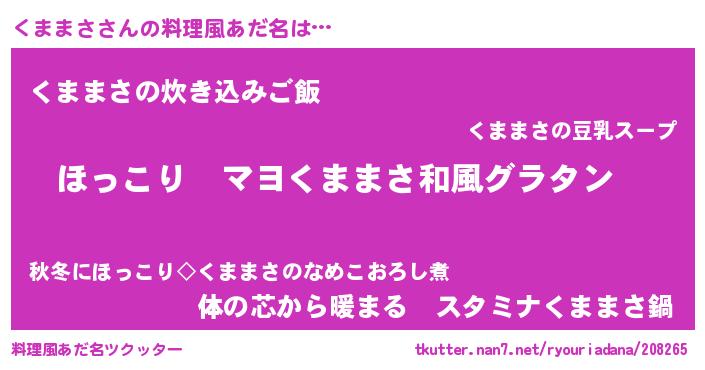 | 男性向けラノベタイトル風あだ名 | 『この素晴らしい世界にくままさを!』 |