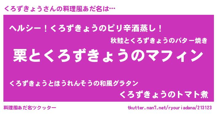 | 意味不明あだ名 | 『自称くろずきょう』 |