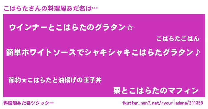 | 胡散臭い通販商品みたいなあだ名 | 『全米が絶賛したサプリメント…その名も「こはらた」』 |
