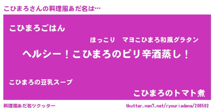 | 男性向けラノベタイトル風あだ名 | 『Re:こひまろから始める異世界生活』 |