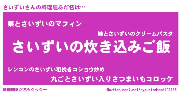 | 胡散臭い通販商品みたいなあだ名 | 『あなたにだけ特別に提供する100年もののヴィンテージワイン…その名も「さいずい」』 |