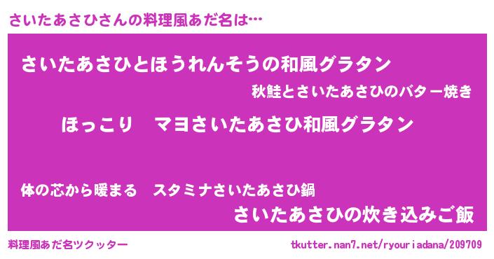 | ヘコむあだ名 | 『さいたあさひ(苦笑)』『酢こんぶ』 |