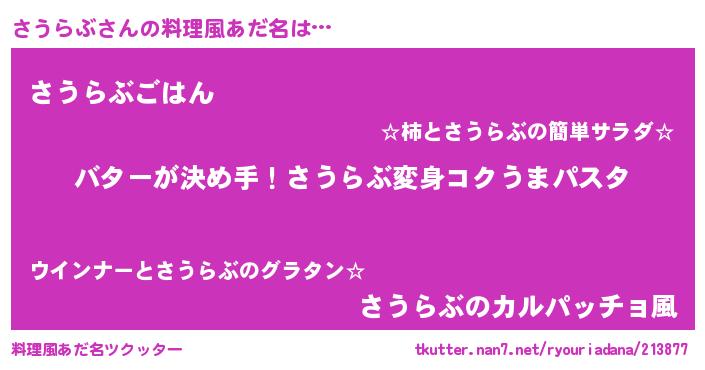 | 女子向けラノベタイトル風あだ名 | 『さうらぶ恋絵巻』『さうらぶ伯爵の花嫁』 |
