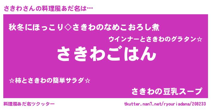 | ヒーロー風カッコイイあだ名 | 『銀牙騎士サキ』『ウルトラさきわマン』 |