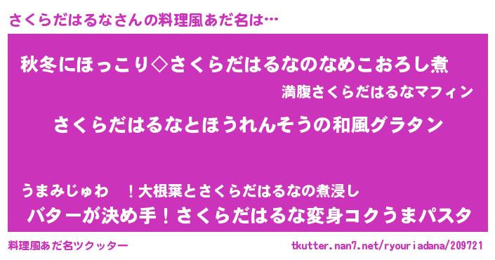 | ヘコむあだ名 | 『さくらだはるな(笑)』『なまこ酢』 |