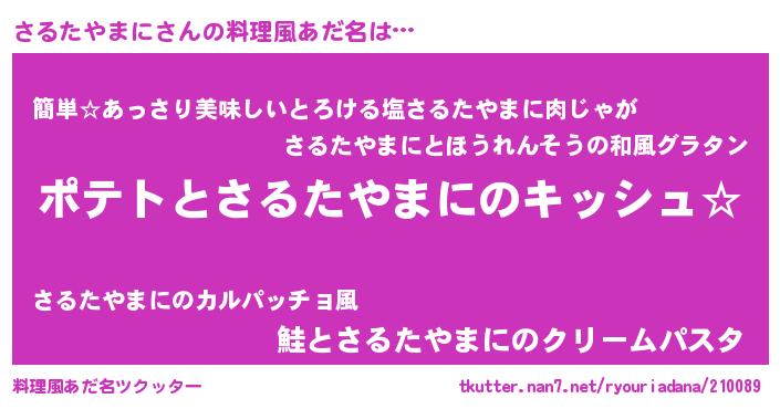 | 男性向けラノベタイトル風あだ名 | 『さるたやまにの嫁は女の子じゃないと思った?』 |