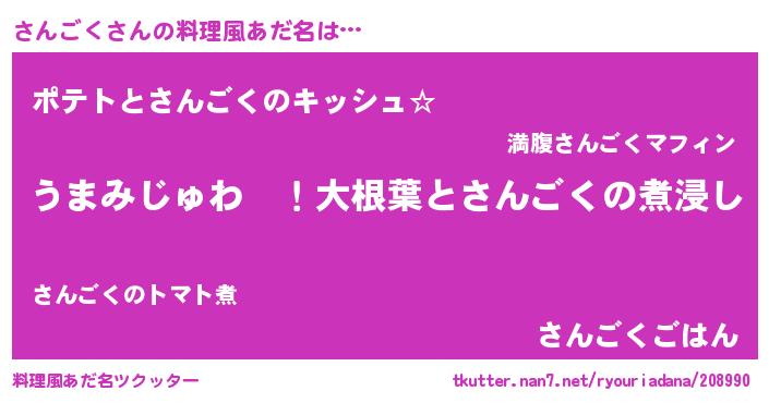 | ヘコむあだ名 | 『酢こんぶ』『さんを』『さんふぇ~』 |