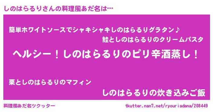 | 意味不明あだ名 | 『自称しのはらるり』 |