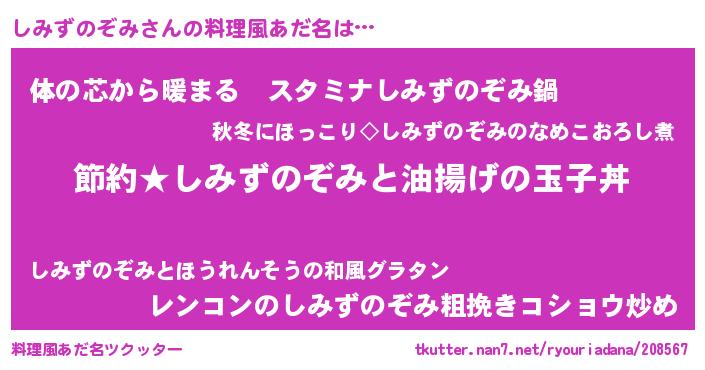| 胡散臭い通販商品みたいなあだ名 | 『モテモテ間違いなし霊験あらたかなお札…その名も「しみずのぞみ」』 |
