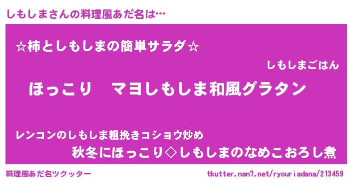 | 意味不明あだ名 | 『住所不定無職しもしま(74歳)』 |