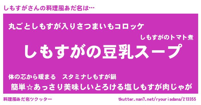| ヘコむあだ名 | 『しもを』『しもすが(笑)』 |