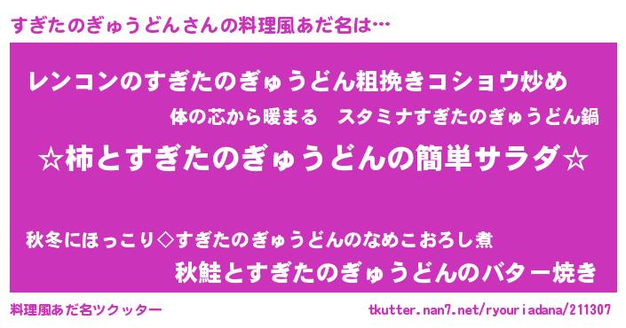 | ヒーロー風カッコイイあだ名 | 『超時空戦士スギタノギュウドン』 |