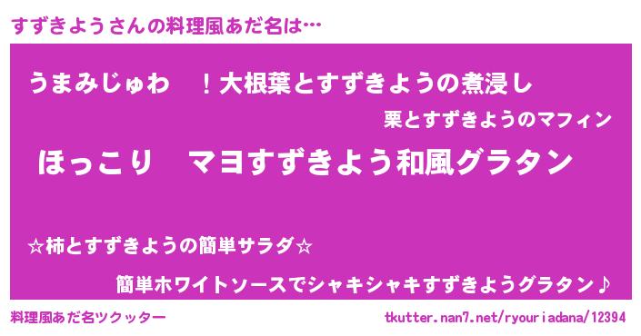 | ヘコむあだ名 | 『酢こんぶ』『すずぷりん』 |