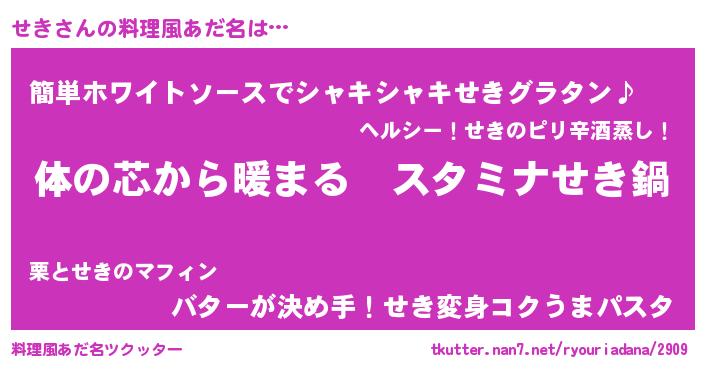 | 意味不明あだ名 | 『せきフォーエバー』『自称せき』 |