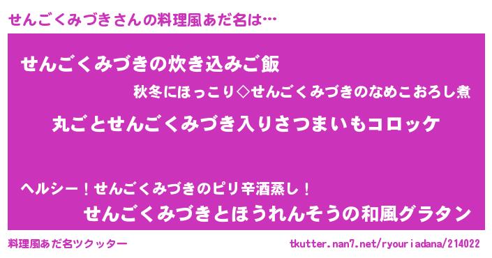 | 男性向けラノベタイトル風あだ名 | 『この素晴らしい世界にせんごくみづきを!』 |