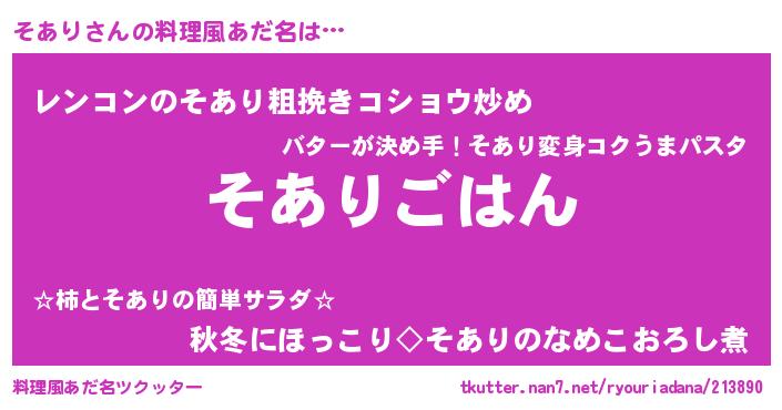 | ヘコむあだ名 | 『そあを』『牛乳』『そあもー』 |
