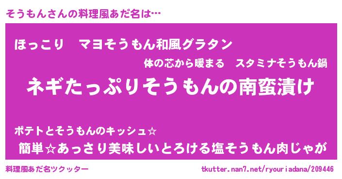 | 胡散臭い通販商品みたいなあだ名 | 『億万長者になれる水晶球…その名も「そうもん」』 |