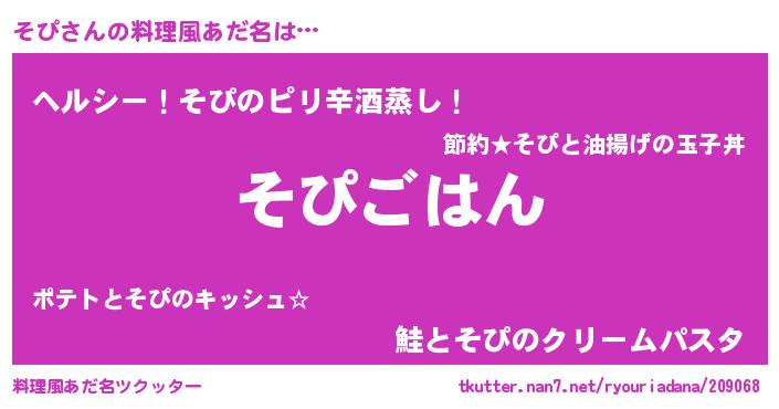 | ヘコむあだ名 | 『そぴっふぃ~』『そぴぷりん』 |