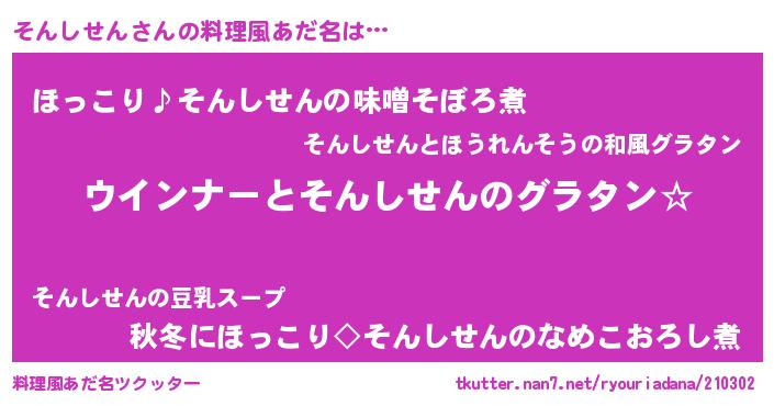 | 意味不明あだ名 | 『そんしせんフォーエバー』 |