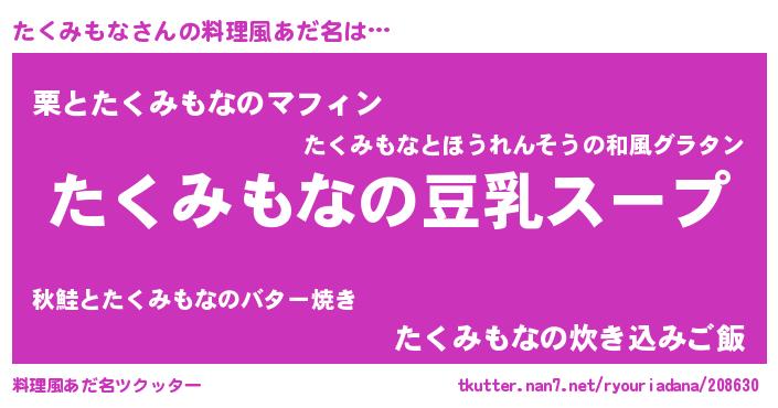 | 女子向けラノベタイトル風あだ名 | 『たくみもなは平凡を望む』 |