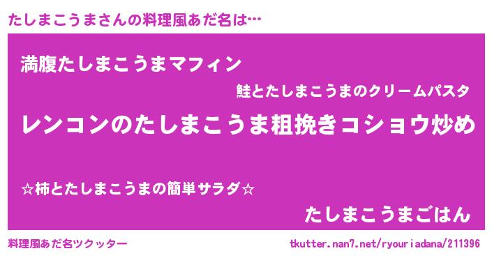 | 女子向けラノベタイトル風あだ名 | 『たしまこうまなんてお断りですっ。』 |