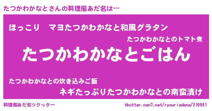 | 恥ずかしいあだ名 | 『プリティーたつかわかなと』『たつちん』 |