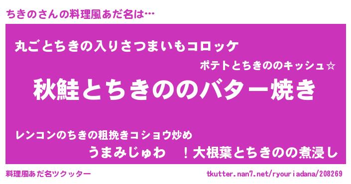 | ヘコむあだ名 | 『ちきの(笑)』『豆乳』『ちきぷりん』 |
