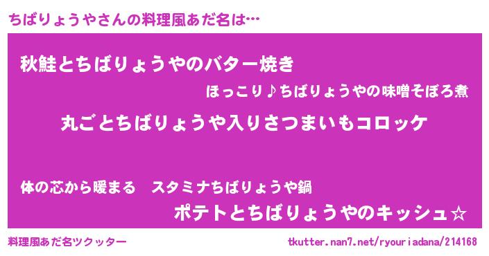 | 意味不明あだ名 | 『住所不定無職ちばりょうや(4歳)』 |