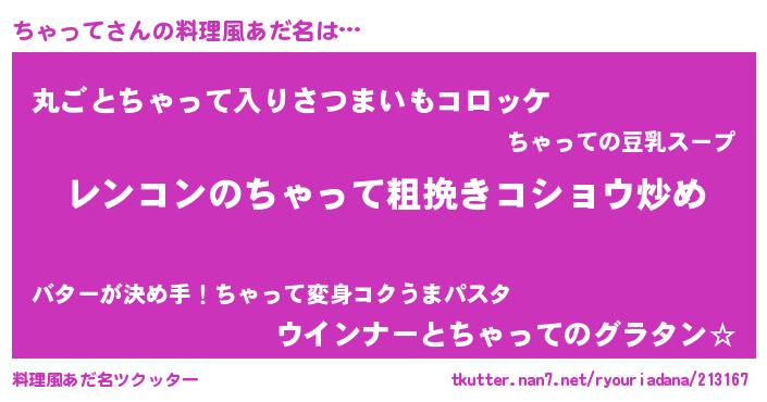 | 意味不明あだ名 | 『自称ちゃって』『ちゃってフォーエバー』 |