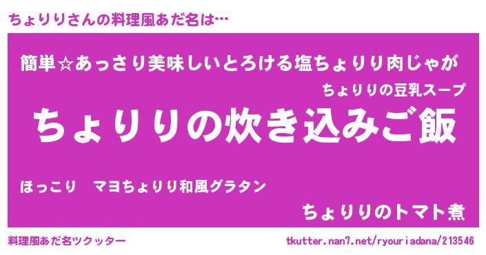 | ヘコむあだ名 | 『ちょりり(笑)』『ちょお』 |