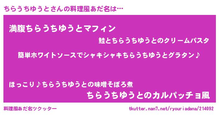 | ヘコむあだ名 | 『ちらを』『ちらうちゆうと(笑)』 |