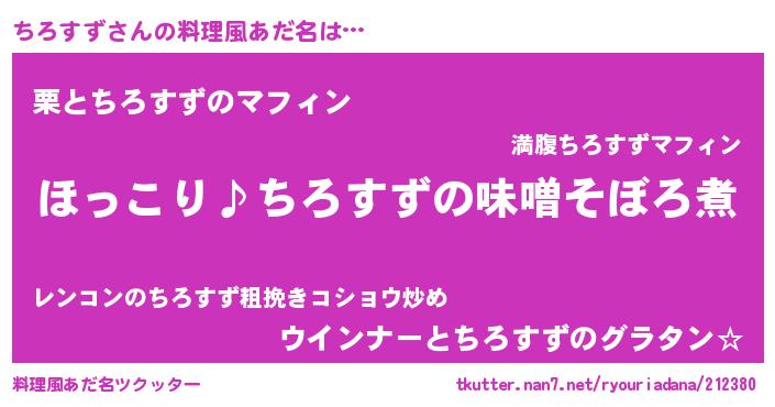 | 意味不明あだ名 | 『ペロリンちろすず』『永久保存ちろすず』 |