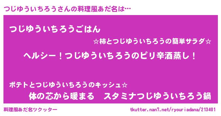 | 男性向けラノベタイトル風あだ名 | 『Re:つじゆういちろうから始める異世界生活』 |