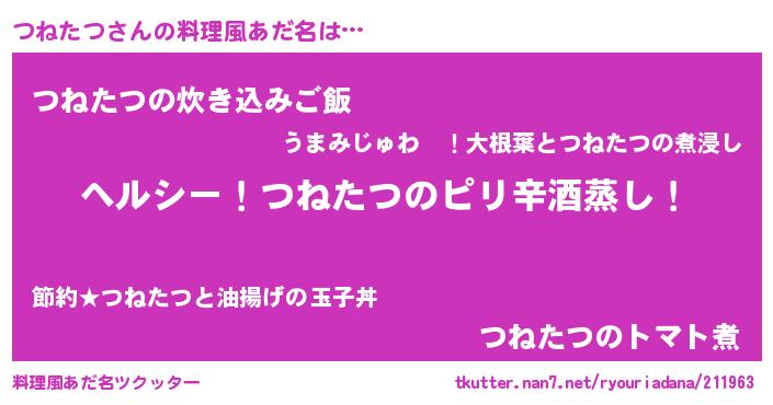 | 男性向けラノベタイトル風あだ名 | 『Re:つねたつから始める異世界生活』 |