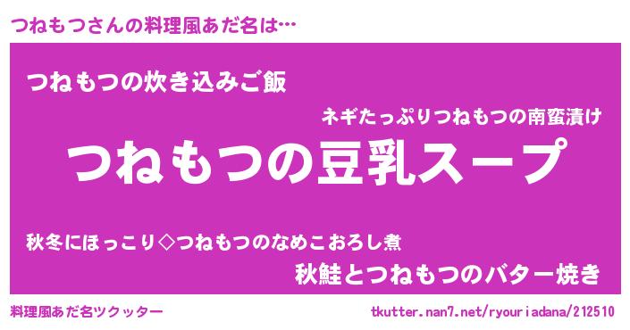 | ヒーロー風カッコイイあだ名 | 『暗黒騎士ツネ』『ネオツネモツ』 |