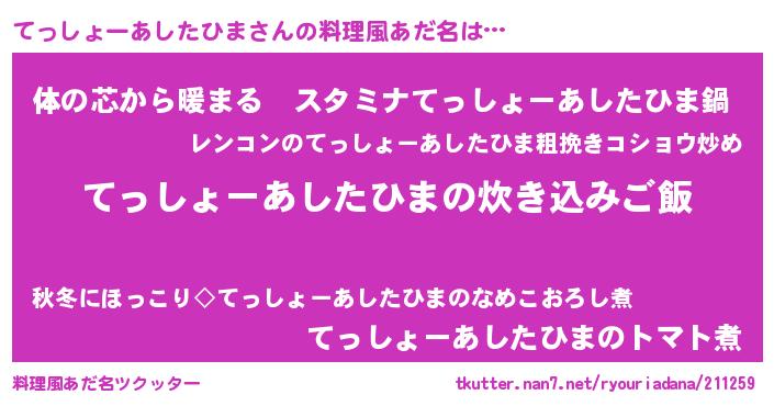 | 胡散臭い通販商品みたいなあだ名 | 『運命の人と巡り会える高級そうな皿…その名も「てっしょーあしたひま」』 |