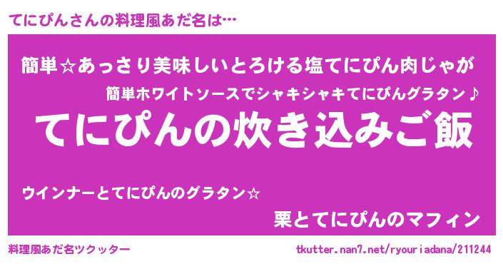 | 欧米人風あだ名 | 『てにぴん・ステッグマイヤー』 |