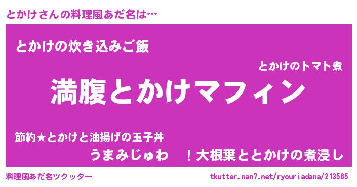| ヘコむあだ名 | 『とかけ(震え声)』『酢こんぶ』 |