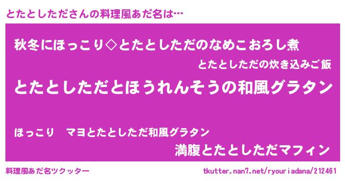 | 胡散臭い通販商品みたいなあだ名 | 『前代未聞の健康食品…その名も「とたとしただ」』 |