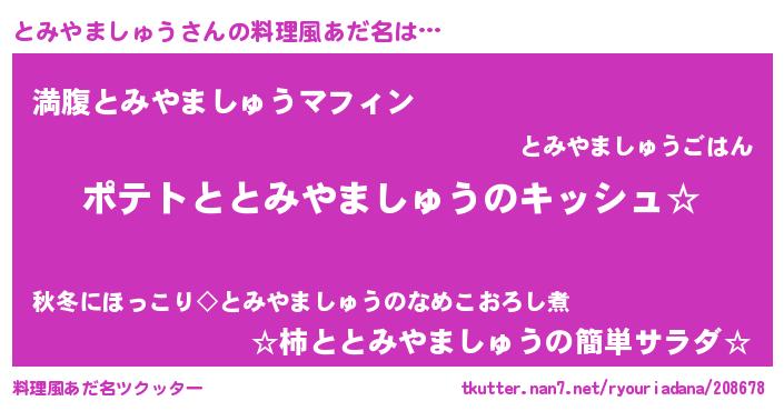 | 胡散臭い通販商品みたいなあだ名 | 『伝統あるサプリメント…その名も「とみやましゅう」』 |