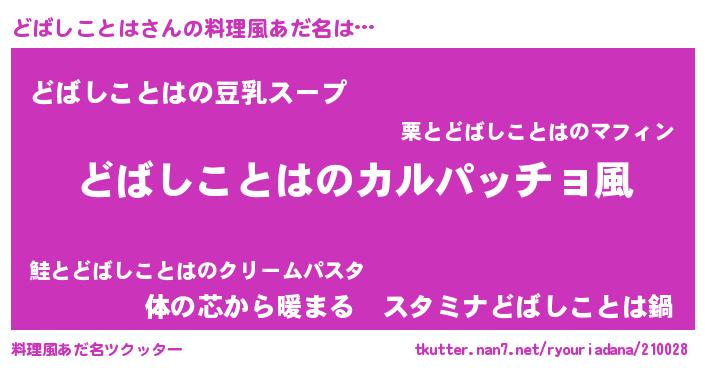 | 意味不明あだ名 | 『住所不定無職どばしことは(43歳)』 |